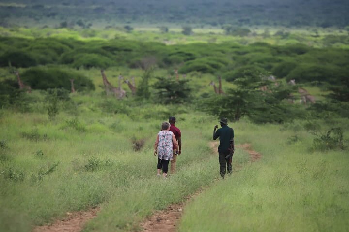 A guided game drive reveals giraffes silhouetted against the horizon, herds of eland and zebra grazing peacefully, and flocks of striking birds such as hornbills, ostriches, and secretary birds. The park is also a paradise for bird lovers, with over 450 recorded species. After a half-day safari, relax at one of the park’s viewpoints for a packed lunch or light refreshment, taking in the vast wilderness that stretches all the way to the Pare Mountains and Tsavo.